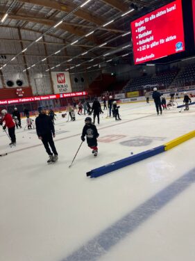 💙 Igår var det fullt drag i Lejonkulan – glädje, skratt och massor av energi på isen! Casper från A-lagets service team fick kämpa hårt i utlåningen när påsen med utrustning till och med tog slut – ett angenämt problem som visar vilket engagemang som finns där ute. Att så många barn vill röra på sig, testa hockey och vara en del av gemenskapen är precis vad vi drömmer om – och vi har bara börjat!